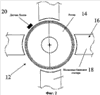 Устройство 10 также выполнено с возможностью определения расхода рабочего тела в насосе 2, приводимом в действие синхронным электродвигателем 12. Показанный на фиг.3 электродвигатель 12 содержит ротор 14 с постоянным магнитом, приводимый во вращение электромагнитным полем, создаваемым статором 16, имеющим полюсные башмаки 18 с соответствующими обмотками.