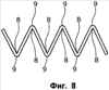 На фиг.8 изображена предпочтительная форма выполнения металлической основы 1 с острыми углами и несколько закругленными кромками 9, или вершинами зубцов.