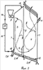 В качестве нижнего ограждения 2 отсека 3 используется воздушная колпачковая решетка 10 (см. фиг.2). В нижней части фронтальной вертикальной стенки отсека 4 зажигания установлены в общих разводках экранных труб воздушные сопла 7 и растопочные горелки 8, направленные наклонно вверх под небольшим острым углом к фронтальной стенке. В верхней части фронтальной стены отсека 3 зажигания топлива размещены устройства 9 ввода полидисперсного топлива в своих разводках экранных труб. Они выполнены в виде вращающихся забрасывателей полидисперсных кусков топлива. Следует отметить, что воздушные сопла 7, растопочные горелки 8 и устройства 9 ввода полидисперсного топлива могут быть размещены на вертикальных участках 1 внешних стен отсека 3 зажигания, перпендикулярных двусветным экранам 5.