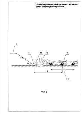 1. Способ поражения легкоуязвимых целей сверхзвуковой ракетой, включающий обеспечение полета ракеты в точку с заданными координатами, лежащую в области расположения цели и вскрытие корпуса ракеты с формированием поражающих элементов ракеты, отличающийся тем, что на конечном этапе полета ракету переводят на траекторию пологого пикирования, в процессе движения по которой поддерживают ее сверхзвуковую скорость, а вскрытие корпуса ракеты производят путем соударения ракеты с земной поверхностью в точке с запрограммированным недолетом до геометрического центра области расположения цели или с заданным положением относительно цели, при этом поражающие элементы формируют как за счет боевой части ракеты, выполненной в виде тонкостенного корпуса, в котором размещено большое количество готовых поражающих элементов, так и за счет фрагментов корпуса ракеты и оборудования, образовавшихся при соударении ракеты с земной поверхностью.