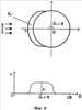Схематично изображения, получаемые цифровым фоторегистратором, для различных типов обледенения и соответствующие им угловые распределения льда по поверхности приемного стрежня представлены на фиг.6 и 7. Оценка формы образовавшегося льда производится на основании соотношения между максимальной толщиной слоя льда на цилиндрическом стержне и толщиной слоя льда вдоль воздушного потока (при = ). В случае полупрозрачного и непрозрачного льда (фиг.6) это соотношение близко к единице вследствие достаточно равномерного осаждения льда по внешней стороне этого стержня. В случае же прозрачного льда (фиг.7) данное соотношение будет много больше единицы из-за специфической формы образующегося при этом слоя льда. Таким образом, если указанное соотношение начинает превышать единицу, это говорит о присутствии перпендикулярной воздушному потоку составляющей нарастания льда, а значит, о возможном ухудшении аэродинамических свойств летательного аппарата. Алгоритм расчета представлен на фиг.9.