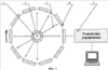 фиг.2 – принципиальная схема расположения составных частей устройства в модификации Б, вид сверху: 6 – неподвижный указатель-мера в модификации Б (с использованием многогранной призмы); 7 – подвижное кольцо с закрепленными на нем двумя встречно направленными референтными лазерами (2-й лазер может быть заменен оптической системой, раздваивающей референтный луч 1-го лазера); 8 – поочередно возникающие (по мере вращения кольца с лазерами) пары лучей-откликов; 9 – закрепленный на шпинделе (вращающийся вместе с ним) кольцевой блок фотоприемников; 10 – экран-маска (используется при необходимости ограничения апертуры подвижных лучей-откликов); 11 – управляющий электронный блок.