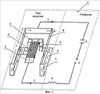 где показаны: 1 – генератор, состоящий из накопительной емкости С, индуктивности L, управляемого разрядника Р и узла нагрузки, включающего 2 – прямой токопровод, 3 – взрываемую фольгу, 4 – участок ОТ, лежащий в плоскости взрываемой фольги, 5 – участок ОТ, лежащий перпендикулярно плоскости взрываемой фольги, 6 – участок ОТ, лежащий в плоскости, параллельной плоскости взрываемой фольги, ниже нее на величину h2, 7 – участок ОТ, лежащий перпендикулярно плоскости взрываемой фольги, 8 – участок ОТ, ось симметрии которого проходит через плоскость взрываемой фольги высотой h1, длиной l, удаленный от боковой границы взрываемой фольги на расстояние b.