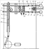 На корпусе установлена площадка 22 для взаимодействия грузов 16, 17. Площадка 22 установлена на направляющих 23 и подпружинена пружинами 24 с низкой жесткостью, что позволяет площадке 22 перемещаться с сопротивлением, много меньшим усилиям со стороны грузов 16, 17. Привод 6 связан с рейкой 4 через пружину 25. Положение редукторов 18, 19 меняется поворотом рукояток 26 и фиксируется фиксаторами 27.