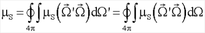 где – плотность потока фотонов в точке , движущихся в направлении ; – дифференциальный по углам коэффициент рассеяния излучения (индикатриса рассеяния); µ=µa+µs – коэффициент экстинкции; – коэффициент рассеяния излучения; – плотность источников фотонов в точке , движущихся в направлении ; – модуль скорости распространения излучения в среде [8].