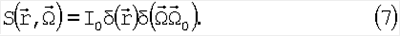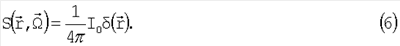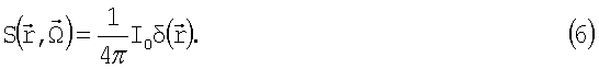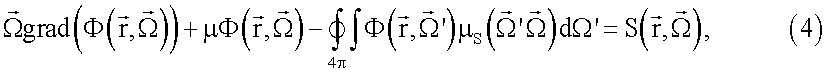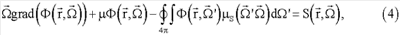 Взаимодействие оптического излучения с сильнорассеивающей средой может быть описано с помощью уравнения переноса излучения (УПИ) [5-8], представляющего собой уравнение баланса энергий или частиц в замкнутом объеме. В стационарном случае УПИ можно записать следующим образом: