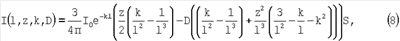 Для интенсивности излучения, зарегистрированной детектором, чувствительная поверхность которого расположена перпендикулярно направлению распространения излучения источника, в УДМ можно получить следующее решение: