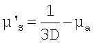 Коэффициент поглощения µa определяют из выражения µa=k2D, после чего редуцированный коэффициент поглощения µ‘ s определяют из выражения .