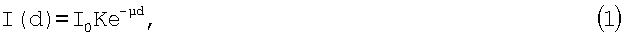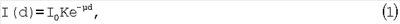где I(d) – интенсивность зарегистрированного сигнала, d – длина оптического пути; I0 – интенсивность излучения источника; К – коэффициент, учитывающий степень загрязнения окошка источника излучения, чувствительность детектора излучения и другие факторы; µ – коэффициент ослабления излучения (коэффициент экстинкции).