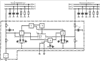 2. Устройство измерения и контроля сопротивления изоляции, изолированной от земли (корпуса) силовой электрической сети переменного тока под рабочим напряжением, содержит источник стабилизированного постоянного напряжения, первый резисторный датчик тока, одним выводом соединенный с общим проводом, первый добавочный резистор, соединенный с первой контролируемой силовой сетью, а вторым выводом соединен со вторым выводом первого резисторного датчика тока и с первым конденсатором фильтра, блок питания, первое устройство сигнализации с первым и вторым светодиодами, блок индикации с переключателем, отличающееся тем, что первый добавочный резистор выбран в k-раз большим по величине, чем величина первого резисторного датчика тока, а источник стабилизированного постоянного напряжения включен между общим проводом и корпусом (землей), кроме того в устройство введены n-й добавочный резистор, соединенный одним выводом с n-й контролируемой электрической сетью, а вторым выводом соединенн с первым выводом n-го резисторного датчика тока, а n-й резисторный датчик тока вторым выводом соединен с общим проводом, кроме того n-й резисторный датчик тока первым выводом соединен с n-м конденсатором фильтра, а n-й добавочный резистор по величине k-раз выбран больше, чем величина n-го резисторного датчика тока, кроме того в устройство введено n-ое устройство сигнализации с первым n-м и вторым n-м светодиодами, причем все светодиоды катодами соединены с общим проводом, также в устройство введен блок внешней световой и звуковой сигнализации с обобщенным светодиодом на выходе и с замыкающими контактами звуковой и световой сигнализацией, причем блок внешней сигнализации световой и звуковой сигнализации соединен непосредственно с выходом каждого устройства сигнализации.