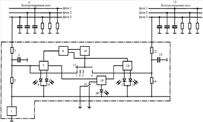 U1 и U2 – величины напряжений между фазой (полюсом) и корпусом контролируемой сети, измеренные в первом и третьем тактах работы устройства соответственно;