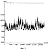 Проводился апостериорный анализ массива зарегистрированных данных геоакустограмм на камчатском геофизическом полигоне после состоявшегося 16.11.02 землетрясения с магнитудой 7,3 балла. Одна из реализаций результирующего сигнала иллюстрируется графиком фиг.3.