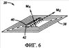На фиг.5 показан вариант осуществления датчика 20 со скрещенными диполями согласно изобретению. Датчик включает в себя две антенны 36, 38, выполненные на изолирующей подложке, причем их магнитные моменты (Mz, Mx) имеют общую точку пересечения. Как отмечено выше, датчики согласно изобретению могут работать как передатчики и/или приемники, как это желательно. На фиг.6 показан другой вариант осуществления датчика согласно изобретению. Этот датчик 20 содержит антенну 38, выполненную подобно той, которая показана на фиг.5, и другую антенну 40, выполненную на сердечнике или «каркасе» 42, как описано в патенте США 6690170. Магнитные моменты (Mz, Mx) в этом варианте осуществления имеют общую точку пересечения и ортогональны друг другу.