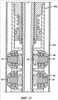 На фиг.10 показана конфигурация датчика 20 по фиг.9, спроецированная за Фарадеев экран 44. Экран 44 включает в себя множество проводящих металлических полос (штырей) 46, перемеженных с множеством изолирующих полос (штырей) 48 для минимизации токовых контуров в проводящем корпусе 22 инструмента. Проводник 50 (т.е. металлическая полоса) связывает металлические полосы 46 на одном конце. В патентах США 6667620 и 6557794 (оба включены в настоящее описание посредством ссылки) раскрыты токоотводящие экраны, которые могут быть использованы для реализации настоящего изобретения.
