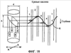 где Ф – угол наклона, А – амплитуда вертикальной протяженности границы пласта, пересекающей скважину, d -диаметр скважины. На фиг.18 показаны границы наклонного пласта на стенке скважины в зависимости от глубины четырех решеток 1-4 датчиков. Как иллюстрируется моделью скважины, наклонная плоскость пересекает скважину, формируя овальную кривую пересечения. Эта овальная кривая показана точками, определяющими синусоидальную кривую (S) на двумерном графике измерений. Таким образом, путем подгонки местоположений по вертикали границ пласта, измеренных четырьмя датчиками, к синусоидальной кривой или путем использования уравнения (9) можно определить угол наклона. В дополнение к определению наклонных плоскостей тот же самый метод может быть использован для обнаружения сдвигов или трещин, которые пересекают скважину.