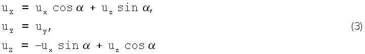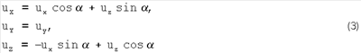 Вводятся два набора ортогональных единичных векторов: ux, uy, uz для формации и uX, uY, uZ для координат инструмента, где uZ направлен вдоль оси симметрии инструмента. Ось z перпендикулярна слоям, ориентированным вверх. Ось инструмента находится в плоскости x-z. Угол наклонения обозначен , тогда: