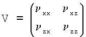 Как описано выше, каждая решетка обеспечивает полезную информацию в различных ситуациях. Комбинация результатов измерений, полученных от решеток, позволяет датчику 20 обеспечивать полезную информацию в широком диапазоне условий в скважине, типов бурового раствора и ориентаций. Четыре простых магнитных диполя датчика 20 обеспечивают четыре измерения, которые могут быть представлены как матрица V напряжений вида: