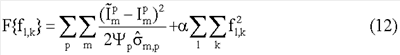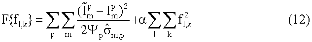 Матрица диффузии и времен релаксации может быть вычислена при соблюдении условия ограничения положительности путем минимизации относительно fl,k в уравнении (8) функции стоимости (или другой целевой функции) вида