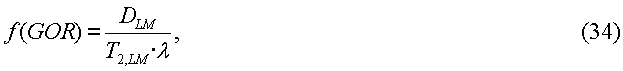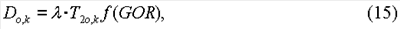 После вычисления одномерных распределений для диффузии и времен релаксации функцию f(GOR) (и, следовательно, соотношение газ/нефть) можно оценить на основании уравнения: