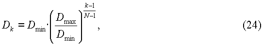 где Dk представляют собой коэффициенты диффузии в уравнении (4), и они равномерно разнесены по логарифмической шкале, например