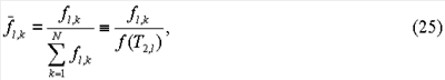 Отметим, что в приведенных выше уравнениях использована понятная форма записи для функций распределения, в которой число и вид аргументов использованы для указания размерности и вида распределения. Используя дискретную форму двумерной функции распределения в уравнении (4), дискретную функцию распределения времен релаксации можно вычислить путем суммирования, то есть:
