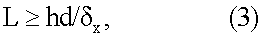 где h – расстояние от поверхности заготовки до оптического пучка, связывающего узел лазерного интерферометра с отражающим элементом, d – величина паразитного смещения в вертикальном направлении центра одного ползуна относительно другого при их перемещении на расстояние L.