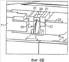 Механизм 5 для раскалывания оптических волокон по плоскости, соответствующий второму варианту осуществления настоящего изобретения, подробно показан на фиг.5 и фиг.6. Механизм раскалывания оптических волокон содержит две пары зажимающих оптическое волокно элементов, причем каждая пара расположена на соответствующей стороне режущей пластины 7 для образования зарубки на оптическом волокне в виде диска для образования зарубки, и центральную опору 29. Каждая пара зажимающих оптическое волокно элементов содержит неподвижный зажимной элемент 31 и подвижный зажимной элемент 33, который предпочтительно является подвижным благодаря электронике панели 23 электронного управления. При использовании подвижные зажимные элементы 33 движутся от их соответствующих неподвижных зажимных элементов 31 для обеспечения зазора между элементами, чтобы обеспечивать возможность введения оптического волокна между ними. Как показано на фиг.5, оптическое волокно 9, зажатое в зажимном блоке 11, расположено в механизме для раскалывания оптического волокна так, чтобы часть 21 оптического волокна, проходящая из торца зажимного блока, была расположена между неподвижным зажимным элементом 31 и подвижным зажимным элементом 33 каждой пары зажимных элементов. После этого, как показано на фиг.6А, каждый подвижный зажимной элемент 33 движется к своему соответствующему неподвижному зажимному элементу, зажимая в соответствии с этим оптическое волокно между элементами. Как показано на фиг.6 В, режущая пластина 7 (лезвие) для образования зарубки затем движется против оптического волокна для создания зарубки в оптическом волокне. Центральная опора 29 затем движется против оптического волокна между двумя парами зажимных элементов и прикладывает давление к оптическому волокну так, чтобы отклонить его немного в области между двух пар зажимных элементов. Как показано на фиг.6, опора 29 имеет центральный паз, ориентированный по существу перпендикулярно оптическому волокну, причем паз является смежным оптическому волокну. Оптическое волокно раскалывается опорой 29, отклоняющей оптическое волокно на обеих сторонах оптического волокна против зарубки (то есть на обеих сторонах паза в опоре), между двумя парами зажимных элементов. Такое отклонение вызывает распространение трещины через оптическое волокно от зарубки, создавая новую скошенную грань оптического волокна, которая по существу перпендикулярна его продольной оси. В качестве альтернативы режущей пластине (для образования зарубки) движущейся против оптического волокна с последующим отклонением оптического волокна опорой 29 режущая пластина 7 для образования зарубки может быть по существу неподвижной, а вместо этого образование зарубки и распространение трещины может быть достигнуто путем приложения давления опоры против оптического волокна с приложением в соответствии с этим давления против режущей пластины для образования зарубки.