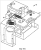Теперь вернемся к фиг.1 (виды (А) и (В)), механизм 3 для сращивания оптических волокон устройства 1 отделен от механизма 5 для раскалывания оптических волокон поворотным экраном 25. Как только оптическое волокно расколото и создана новая перпендикулярная торцевая поверхность оптического волокна, зажимной блок/волоконный узел вручную перемещается из механизма 5 для раскалывания оптических волокон по плоскости и устанавливается в механизме 3 для сращивания оптических волокон. (Зажимной блок 11 остается зажатым на оптическом волокне 9 для последующей технологической операции сращивания.) Механизм 3 для сращивания оптических волокон включает в себя удерживающие средства в виде прецизионной платформы 27 (в общем, в виде паза, как иллюстрируется на приведенных чертежах). Как только второе оптическое волокно было расколото подобным образом, как описано выше, его зажимной блок/волоконный узел (то есть, оптическое волокно с зажимным блоком, еще зажатым на нем) вручную перемещают из механизма 5 для раскалывания оптических волокон по плоскости и также устанавливают в прецизионной платформе 27 механизма 3 для сращивания оптических волокон ориентированным так, чтобы новые торцевые поверхности двух оптических волокон были обращены друг к другу. (То есть второе оптическое волокно установлено точно в противоположной ориентации, то есть под углом 180 градусов относительно первого оптического волокна).