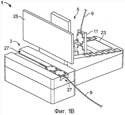 Фиг.1 – виды (А) и (В), иллюстрирующие первый вариант осуществления ручного портативного устройства для сращивания оптических волокон, соответствующего настоящему изобретению;