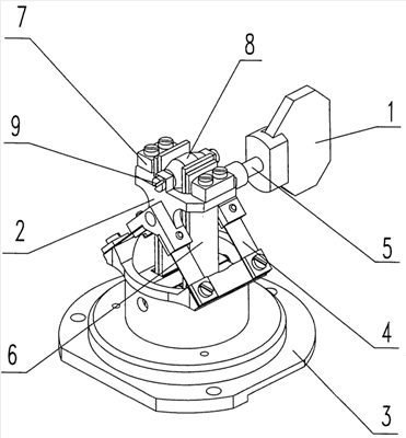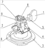 Тело вращения 8, установленное с возможностью качания на оси 9, совместно с упорами 7 образует беззазорное кинематическое соединение свободных концов пьезокерамических биморфных элементов 6 с подвижной частью 2 упругого подвеса и позволяет уменьшить потери на трение при приведении в движение подвижной части 2 упругого подвеса.