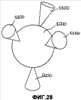 фиг.28 – общий вид, иллюстрирующий шаровую головку, удерживаемую, по меньшей мере, четырьмя точками контакта, расположенными на сферической поверхности согласно вершинам пирамиды, содержащей ее центр.