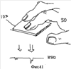 27. Устройство ввода данных пользователем, такое как манипулятор, содержащее корпус, на котором расположен, по меньшей мере, один датчик, позволяющий определять положение конечностей пользователя по отношению к поверхности устройства путем определения того, как пользователь производит удерживание, средство анализа полученных от датчиков данных о контакте, по меньшей мере, менее активной части руки на корпусе устройства во время охвата или придерживания устройства во время использования, средство сравнения полученных данных с заранее заданными данными, соответствующими определенному положению руки пользователя, хранящимися в средстве памяти.