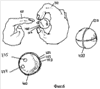 фиг.6 – новый тип устройств на основе технологии в форме шара с несенсорным покрытием, определяющий положение руки на шаре, согласно изобретению;