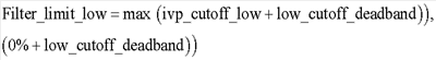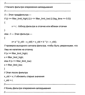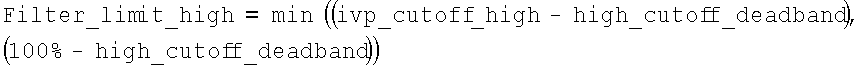 Следующий компьютерный программный псевдокод демонстрирует один из способов, которым контроллер, соединенный с входным фильтром 20 опережения-запаздывания, можно запрограммировать так, чтобы установить верхний и нижний предел фильтра в желаемые пороговые уровни: