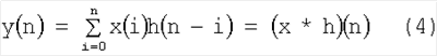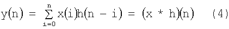 Это выражает, что выходные данные фильтра, моделирующие зерно пленки у(n), являются сверткой входных данных х(n) с импульсной характеристики фильтра h(n):