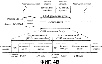 Вместо формирования кадра связывания, включающего в себя кадровый синхросигнал, 9-байтовый физический адрес, 114-байтовые пользовательские данные и 32 байта четности, как показано на фиг.4а, кадр связывания может быть сформирован так, чтобы он включал в себя кадровый синхросигнал, 9-байтовый физический адрес, содержащий 1 резервный байт и 4 байта четности, а также 146-байтовые пользовательские данные, как показано на фиг.4b или 12а. 146-байтовые пользовательские данные можно скремблировать, а 4-байтовый действительный физический адрес использовать в качестве ключа скремблирования.