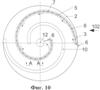 Приведенный на фиг.9-12 четвертый вариант изолятора по изобретению представляет собой модификацию тарельчатого изолятора и предназначен для использования в составе гирлянды аналогичных изоляторов. На нижней поверхности тарельчатого изоляционного тела 2 тарельчатого изолятора 102 выполнены два изоляционных спиральных ребра. Одно из них (ребро 10) выполняет чисто изоляционную функцию, т.е. служит для обеспечения требуемого значения минимального пути утечки при наличии МЭС. В теле второго изоляционного ребра (ребра 3) установлены электроды 5, разделенные между собой прорезями 7, которые могут быть выполнены так, как показано на фиг.5 и 6, или, альтернативно, в виде круглых отверстий, как показано на фиг.10 и 12. В этом варианте между электродами сформированы газоразрядные камеры, повышающие эффективность функционирования изолятора 102 в качестве грозового разрядника.