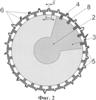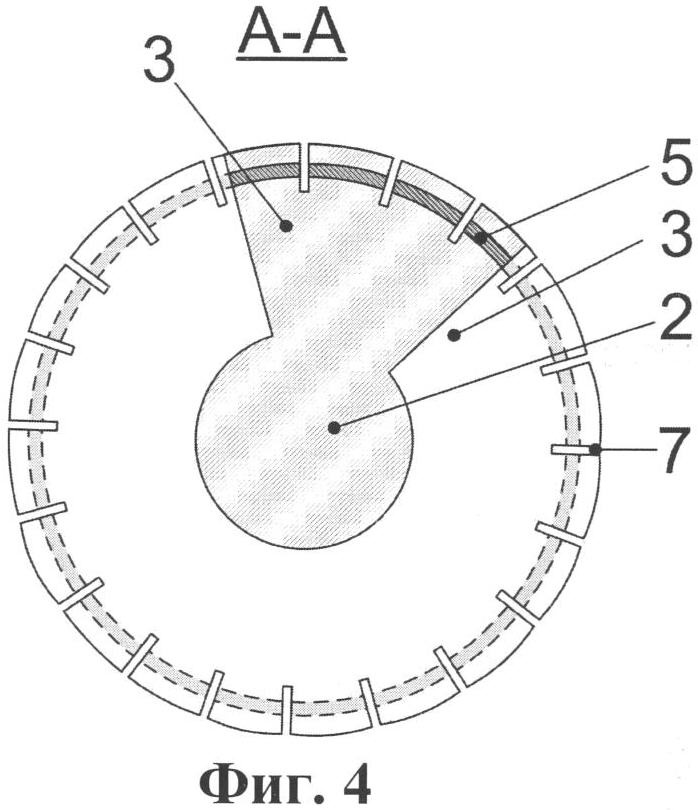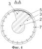 на фиг.5 в сечении, на виде сверху, в увеличенном масштабе показан фрагмент варианта спирального ребра изолятора по фиг.3, 4;