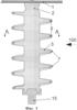 Поскольку необходимость закрепления на поверхности изоляционного тела 2 большого количества изоляционных элементов усложняет технологию изготовления высоковольтного изолятора по изобретению, представляется желательным объединить эти элементы в один или несколько протяженных изоляционных элементов, выступающих из поверхности изоляционного тела 2, например, придать им вид одного или n спиральных изоляционных ребер.