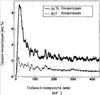 Фиг.2 представляет собой график, на котором изображены средние концентрации Tb (a) и F (b) в теле магнита M1 из примера 1 как функции глубины от поверхности магнита.