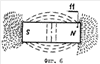 Сущность изобретения поясняется чертежами, где на фиг.1 изображен общий вид магнитоэлектрического двигателя, на фиг.2 – вид сзади на магнитоэлектрический двигатель, на фиг.5 – вид спереди на магнитоэлектрический двигатель, на фиг.4 – расположение узлов внутри корпуса магнитоэлектрического двигателя, на фиг.5 – схема усилительного элемента магнитоэлектрического двигателя, на фиг.6 – картина магнитного поля прямоугольного магнита, на фиг.7 – устройство электромагнитодинамического двигателя, на фиг.8 – схема работы усилительного элемента.
