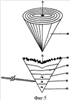 Как уже обсуждалось ранее, металлы, находящиеся в минеральном концентрате, расположены в порядке их удельных масс и являются застывшими в конусе: золото 92, которое является самым тяжелым или имеет самую большую удельную массу, расположено на самом дне, затем идет свинец 93, собранный между золотом 92 и серебром 94, а остальные металлы 95 (сульфидные минералы цветных металлов) расположены слоями над серебром 94. Самое главное то, что указанные металлы четко отделены друг от друга, золото имеет вид золотого конуса, расположенного на самом дне, а точно над ним в цилиндрической симметрии пространственно расположены наплавленные слои усеченных конусов металлов. Следовательно, если известно месторасположение границ раздела между этими усеченными конусами, разные металлы можно разделить даже механическим способом. В настоящий момент известны местоположения границ раздела между соседними металлами, поскольку металлы отличаются друг от друга главным образом удельными сопротивлениями. Проводя картографию конического слитка 90, представленного на фиг.5, с помощью зонда 97, измеряющего сопротивление, можно четко определить границы между разными металлами – непосредственно в указанных местоположениях должно быть выполнено разделение на слои (механическое).