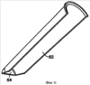 Вход 41 для воздуха расположен под углом вниз относительно вогнутого дна 44, и соответственно выход 43 для продукта расположен под углом вверх относительно вогнутого дна 44. Сплошная направляющая перегородка 58 проходит между входом 41 для воздуха и выходом 43 для продукта. Направляющая перегородка 58 заострена и расположена над воздушным потоком, проходящим из воздушного входа 41 в выход 43 для продукта. Наклоненный вниз воздушный вход 41 предотвращает попадание продукта в подающий воздух шланг 38, в то время как наклоненный вверх выход 43 для продукта предотвращает прохождение продукта в подающий продукт шланг 42 и закупоривание его.