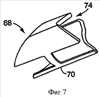 В других ситуациях семена или несеменной продукт могут быть слишком легкими и легко переносятся даже слабым воздушным потоком. Для устранения этой проблемы направляющие перегородки 58 могут быть снабжены элементом 68. Элемент 68 зажат на направляющих перегородках 58. Элемент имеет образующее препятствие дно 70, которое ограничивает количество продукта, открытого для воздушного потока. Элемент 68 может быть выполнен из пластмассы. Верхний зазор 74 открыт, так что зажим можно устанавливать на направляющей перегородке 58.