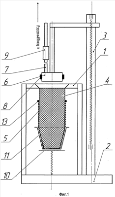 Устройство содержит раму 1 с опорной плитой 2, на которой размещены вертикальные стойки 3. На раме 1 закреплена загрузочная труба 4, выполненная с воронкой в своей верхней части и с закрепленным на ней полиэтиленовым мешком-вкладышем 5 в нижней части.