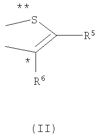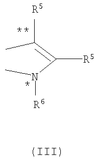 атомы, отмеченные символами * и **, во всех случаях связаны с атомами соединения формулы (I), которые отмечены тем же символом, и