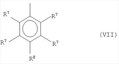 Предпочтение отдается случаю, когда не менее чем одна из групп Т и Т’ замещена радикалом R6 формулы (VII), а особое предпочтение отдается случаю, когда обе группы замещены таким радикалом. Особое предпочтение отдается случаю, когда не менее чем одна из групп Т и Т’ является группой формулы (IV), которая замещена радикалом R6 формулы (VII), а другая обладает формулой (II) или (IV) и также замещена радикалом R6 формулы (VII).