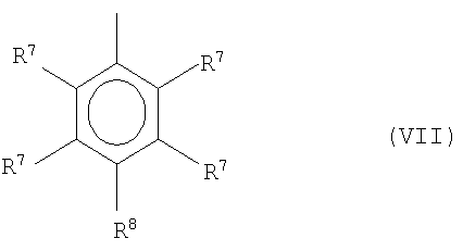 R6 являются одинаковыми или разными и независимо друг от друга означают галоген или линейный или разветвленный С1-C20-алкил, С3-C20-циалоалкил, который может содержать в качестве заместителей один или большее количество C1-С10-алкильных радикалов, С6-C20-арил, C7-C20-алкиларил или C7-C20-арилалкил и может содержать один или большее количество гетероатомов, являющихся атомами групп 13-17 периодической системы элементов, или одну или большее количество ненасыщенных связей, где R6 предпочтительно означает арильную группу формулы (VII),