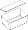 Предпочтительно, чтобы крышки обладали короткими сторонами, высота которых обычно составляет от 10 до 20 мм. Также предпочтительно, чтобы нижнее упрочняющее ребро крышки располагалось внутри, придавая ей жесткость. Кроме того, это упрощает надевание крышки на коробку для закрывания контейнера.