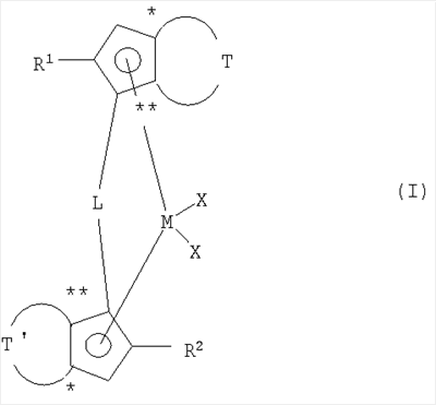 Особое предпочтение отдается каталитическим системам на основе металлоценовых соединений, обладающих формулой (I),